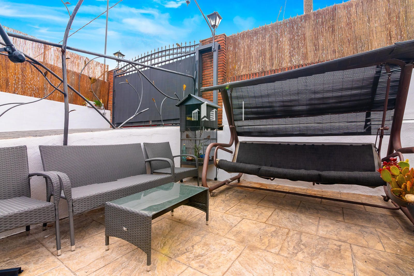 La casa, distribuida en una sola planta, cuenta con 110 m² construidos que se reparten en tres habitaciones, dos baños completos, un salón luminoso con acceso directo a la terraza y una cocina moderna y funcional. Dispone también de armarios empotrados, calefacción eléctrica individual, plaza de garaje incluida en el precio y un trastero que aporta un extra de almacenamiento.